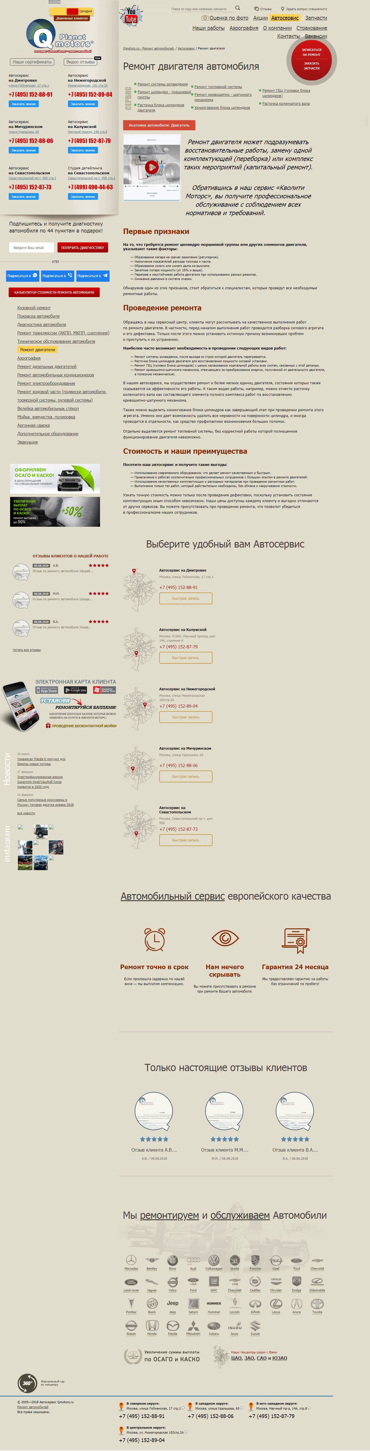 Модернизация и продвижение сайта по ремонту двигателя автомобиля